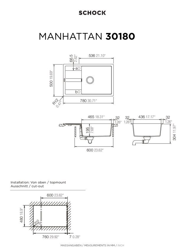 Νεροχύτης Κουζίνας Γρανίτη Manhattan 78x50 Schock Cristalite Concrete Granite 30180-1451