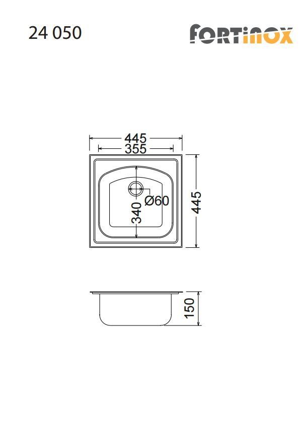 Νεροχύτης Κουζίνας Ανοξείδωτος Valley 44,5x44,5 Fortinox Inox Λείο 24050-110
