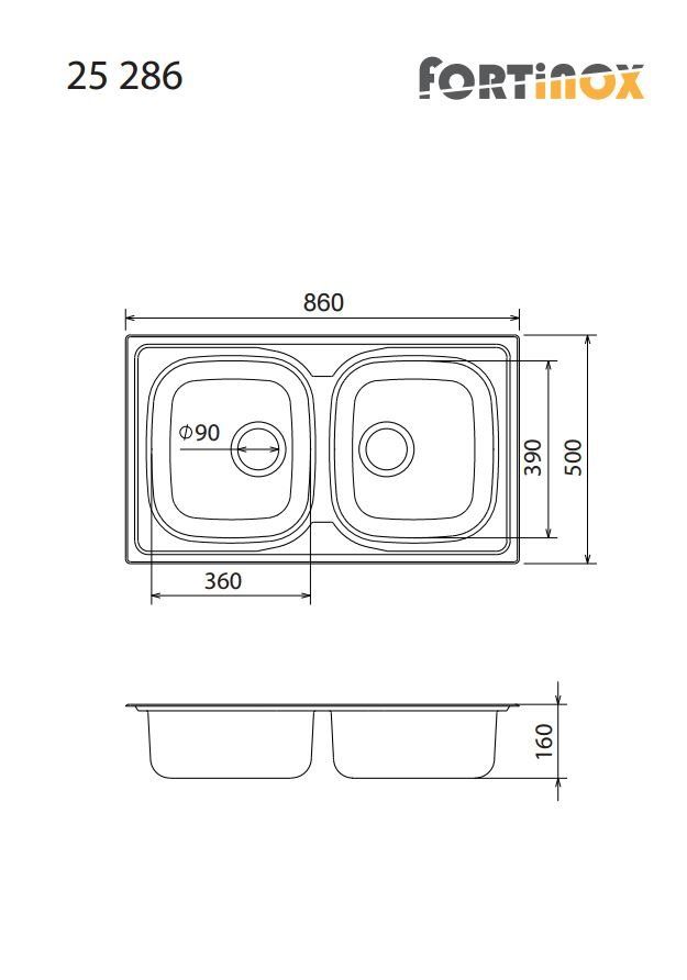 Νεροχύτης Κουζίνας Ανοξείδωτος Valley 86x50 Fortinox Inox Λείο 25286-110