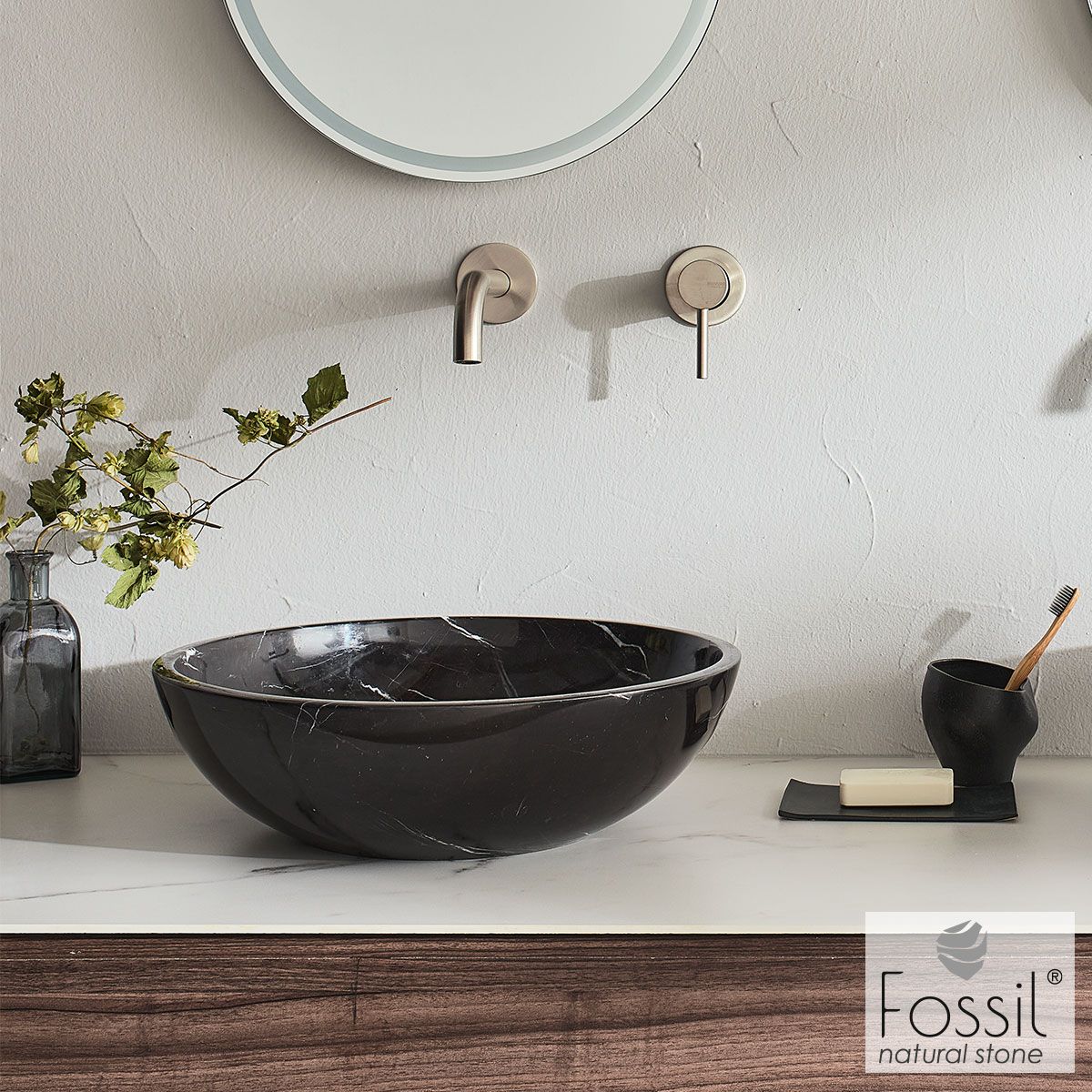 Νιπτήρας Μαρμάρινος Molo Φ45 h.14 Fossil Marquina Nero DR45-400