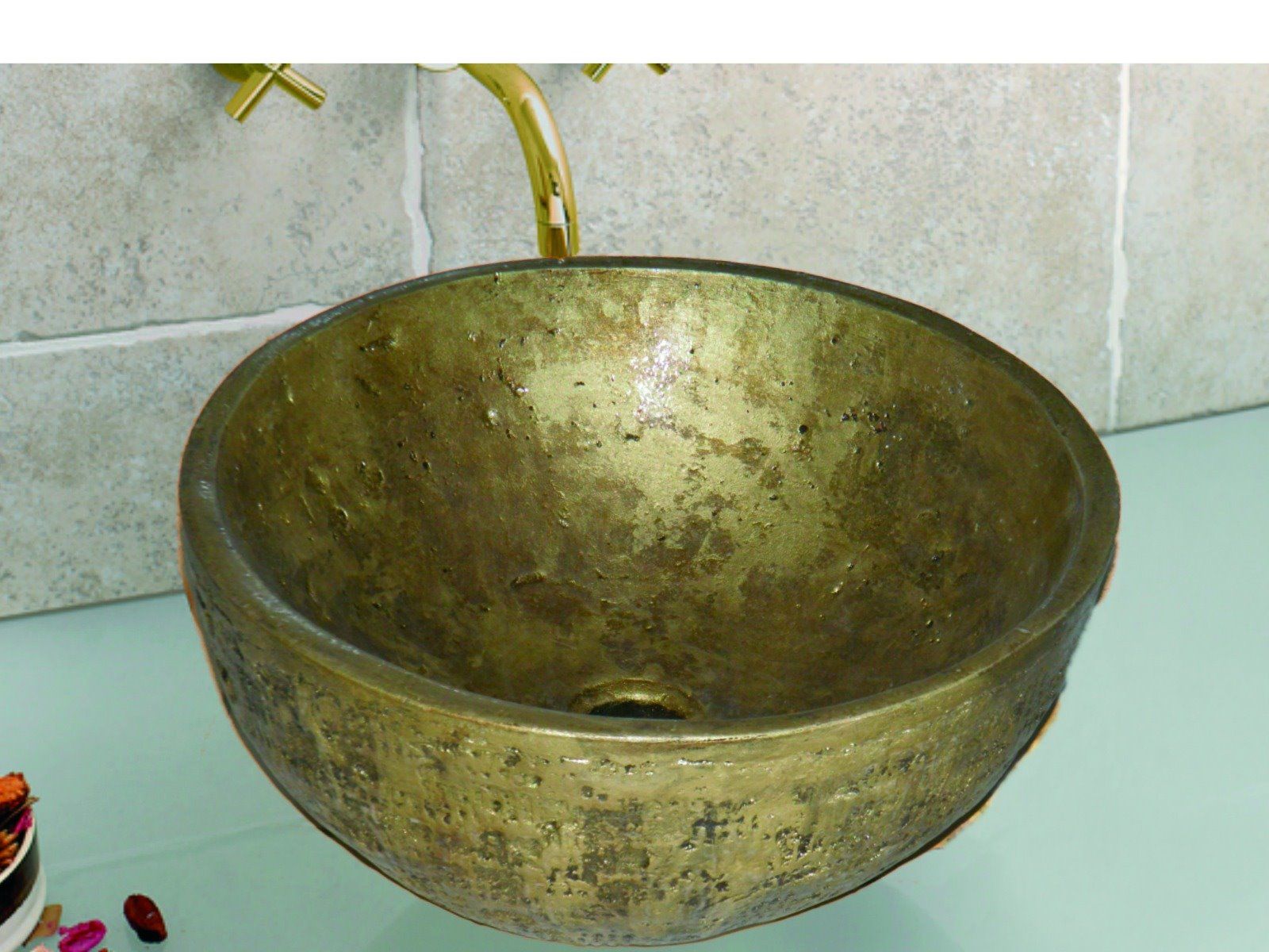 Νιπτήρας Επιτραπέζιος Χειροποίητος Ø37*15,5 εκ. Ορείχαλκος Travertino "ΘΕΩΝ" 90079.