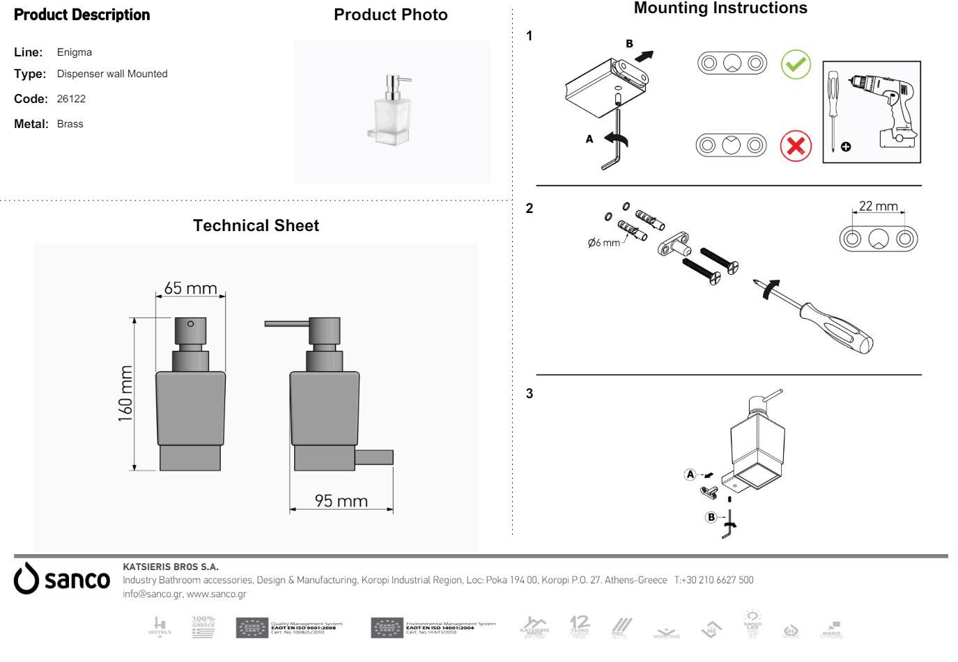 Ντισπένσερ Επίτοιχο Χρωμέ Sanco Enigma 26122-A03Ειδική Τιμή 54,00 € Κανονική τιμή 60,00 € -