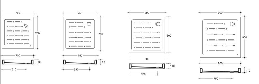 Ντουσιέρα Λευκή Πορσελάνη Τετράγωνη Μ70xΠ70xΥ12cm Colorado 07070