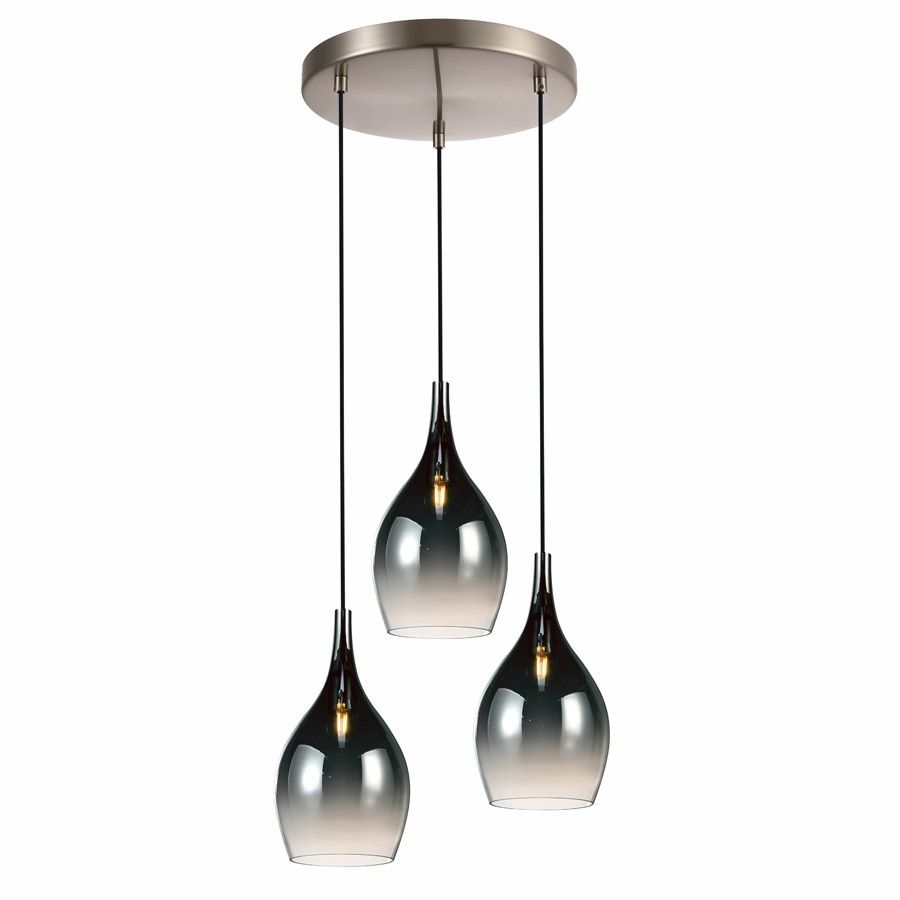 Πολύφωτο-κρεμαστό φωτιστικό, τρίφωτη ροζέτα, κατασκευασμένο από χειροποίητα γυαλιά και μεταλλική βάση σε νίκελ ματ.Ύψος: 120 εκ.Μήκος: 40 εκ.Διάμετρος γυαλιού: 20 εκ.Λαμπτήρες: 3 τεμ.Τύπος Λαμπτήρα: Ε27Watt: 40- ΥΨΟΣ: 120 cm