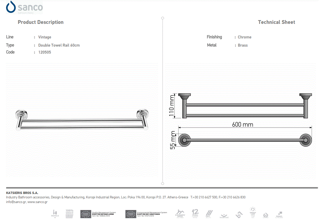 Περιγραφή: Πετσετοθήκη Διπλή Επίτοιχη 60εκ.