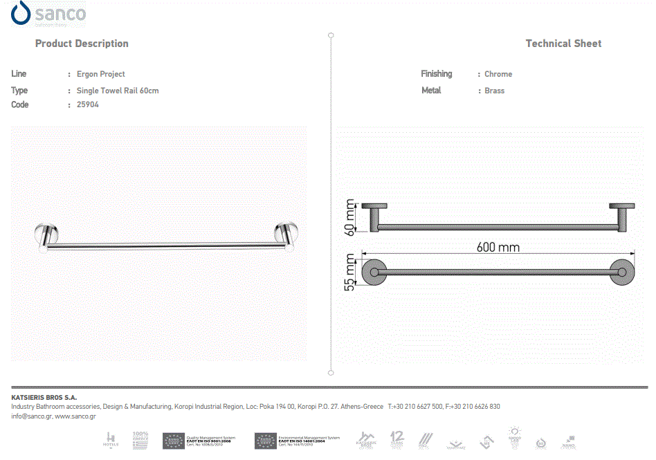 - Πετσετοθήκη Διπλή Gold 24K Sanco Ergon 25905-A05 Ειδική Τιμή 162,00 € Κανονική τιμή 180,00 €