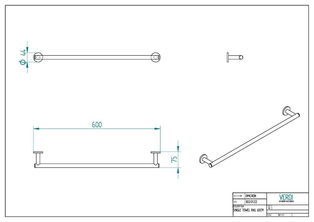 Πετσετοθήκη Μπάνιου 60cm W60xH44mm Rose Gold Gloss Verdi 3020151