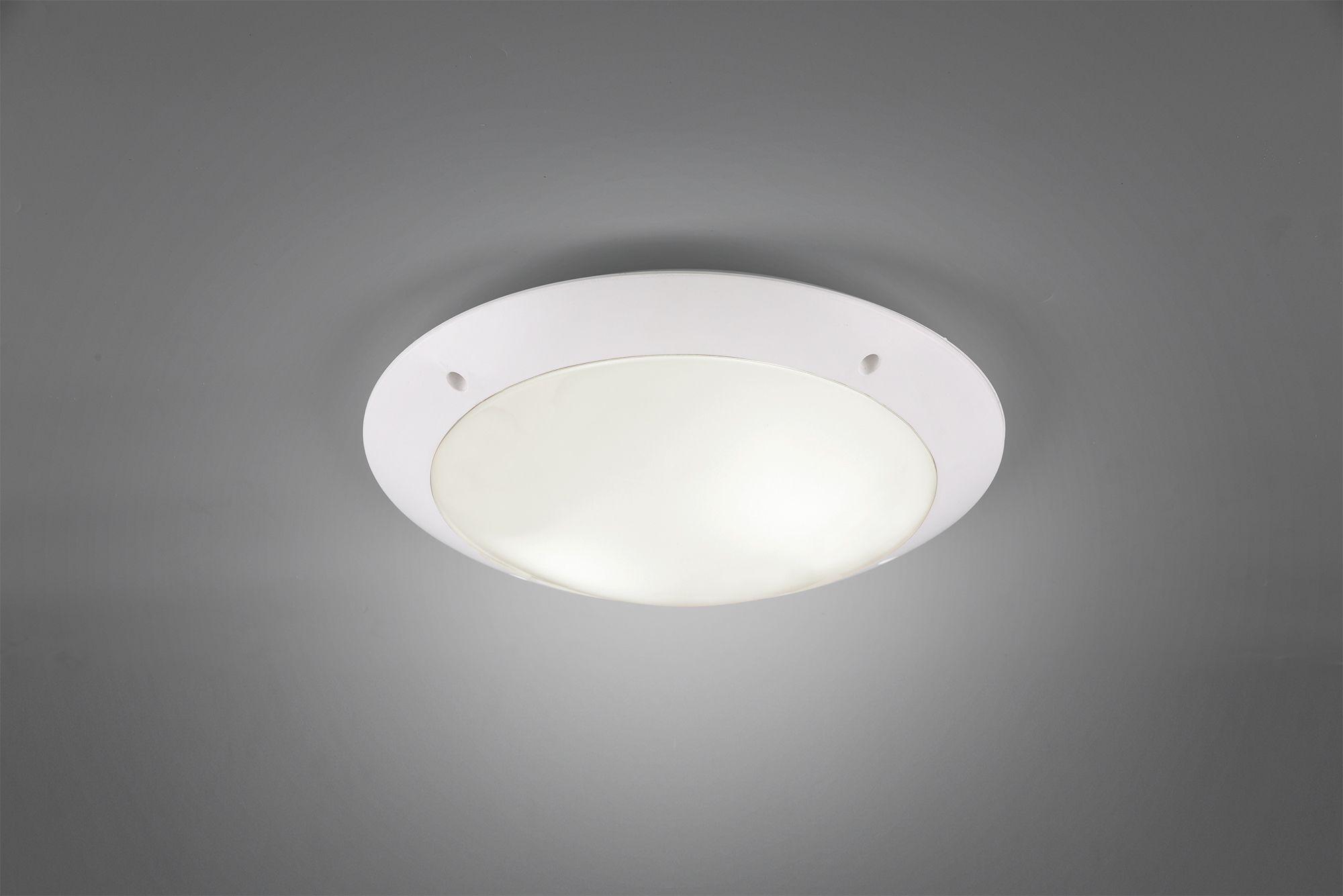 Πλαφονιέρα της Trio Lighting σε λευκό χρώμα, για χρήση σε εξωτερικούς χώρους. Διαθέτει βαθμό προστασίας IP54, που δηλώνει ότι έχει μερική προστασία απέναντι στη σκόνη και τη ρήψη νερού με μεγάλη ένταση (πχ. καταρρακτώδης βροχή).