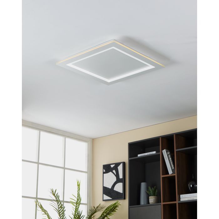 Κλασική πλαφονιέρα οροφής της Eglo σε λευκό χρώμα, από μέταλλο. Διαθέτει ενσωματωμένο LED.