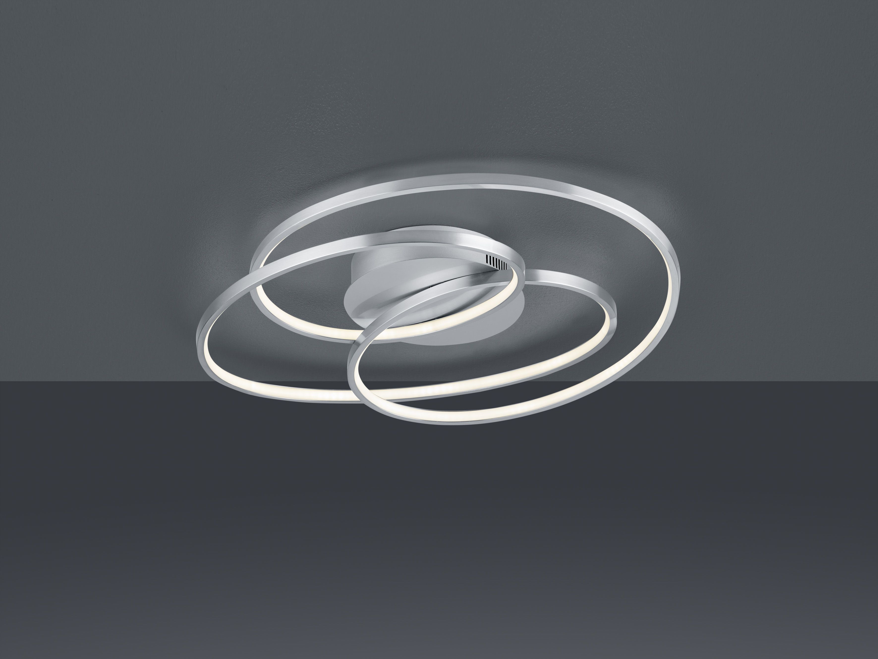 Μοντέρνα πλαφονιέρα οροφής της Trio Lighting σε ασημί χρώμα, από μέταλλο.