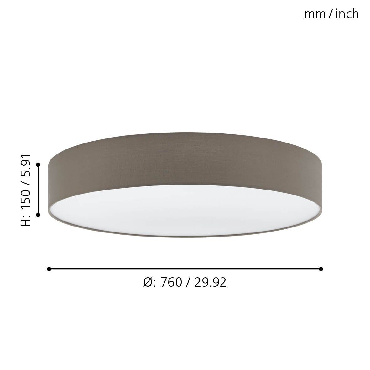 Πλαφονιέρα Οροφής Υφασμάτινη Γκρι 76xH15cm E27 Eglo 97616