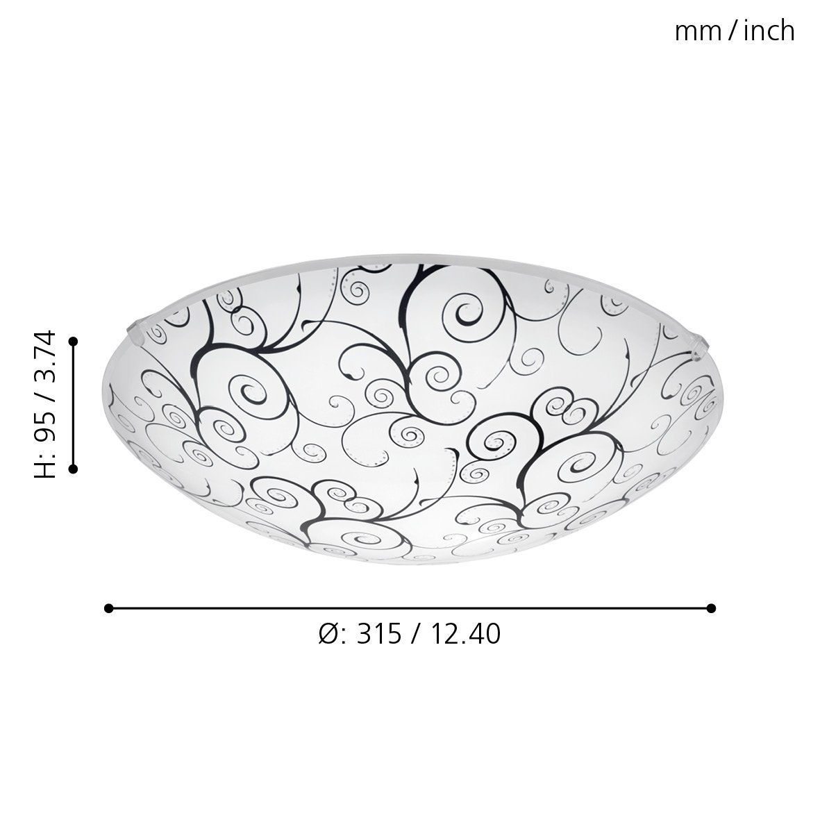 Πλαφονιέρα Οροφής 31,5xH12,5cm Led 3000K 370lm Γυαλί Μαύρο-Λευκό Eglo Margitta 96117
