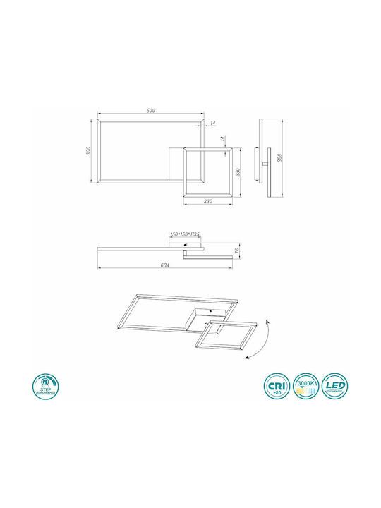 Πλαφονιέρα Οροφής 63cm Led SMD 25w 3000K 3000lm Black Mat Trio Lighting Padela R62642132