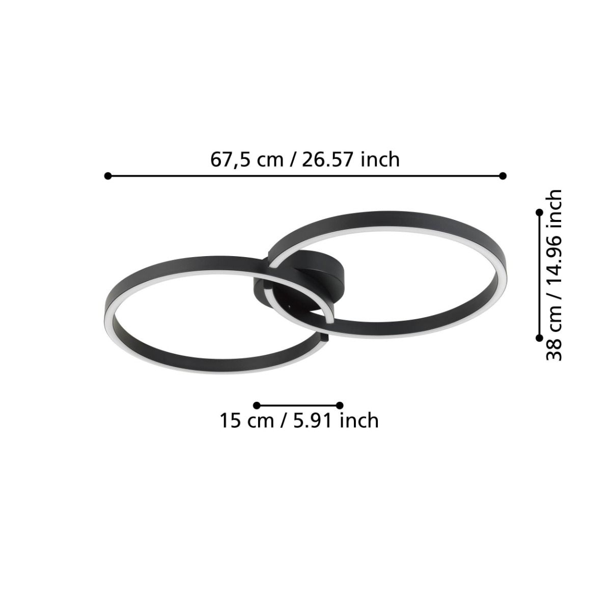 Πλαφονιέρα Οροφής L675xB380mm LED 19,5w RGB-W 2400lm Remote Μαύρο Eglo Amandolo 900955
