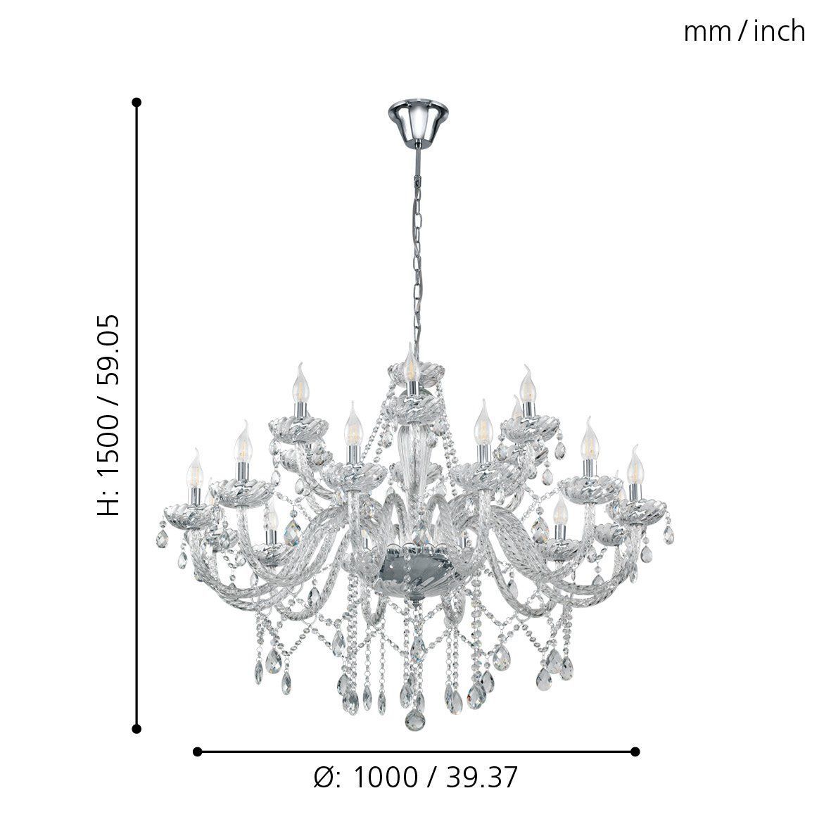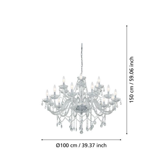 Πολυέλαιος Δεκαοκτάφωτος Ø100cm 18xE14 Διάφανος Eglo Basilano 39103