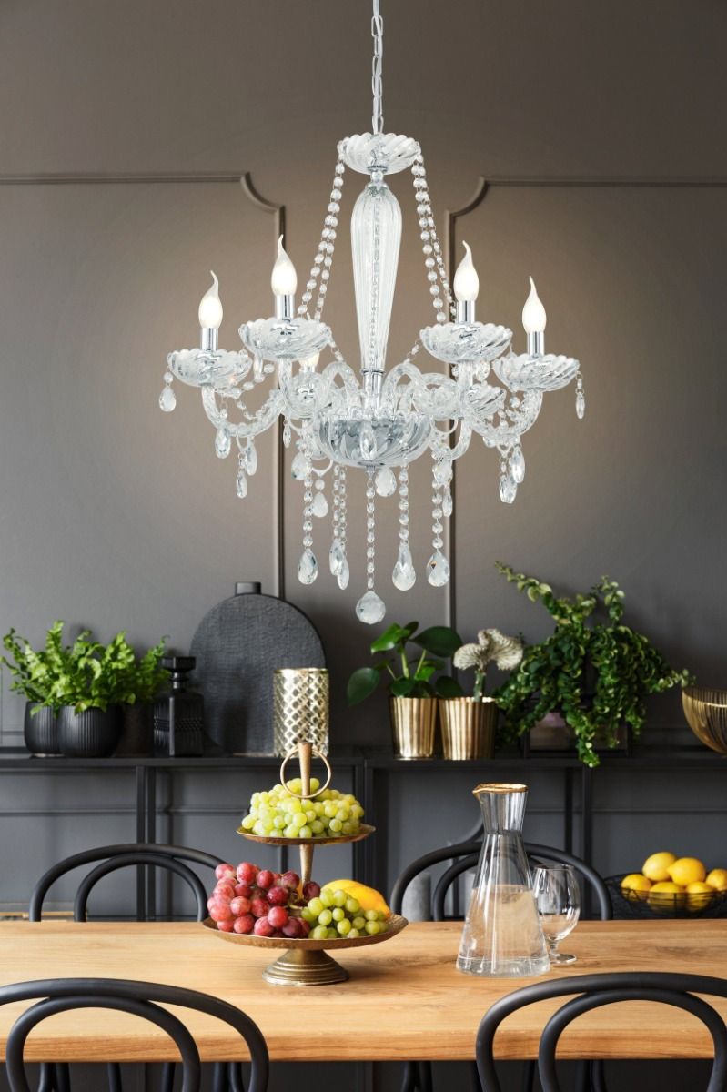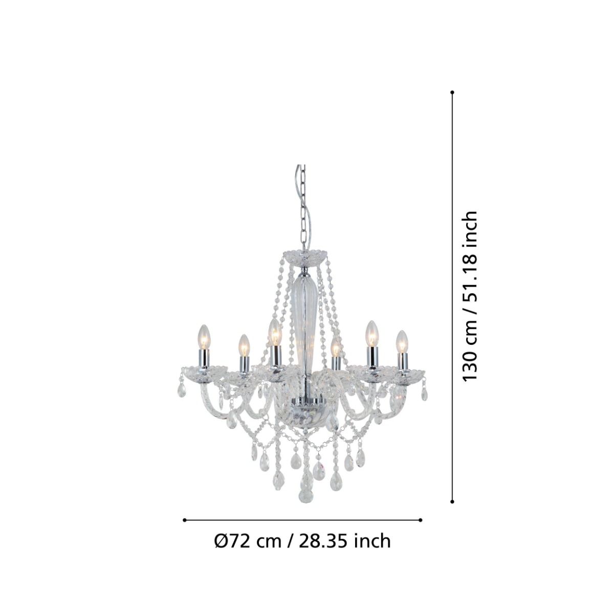 Πολυέλαιος Εξάφωτος 72xH130cm 6xE14 Χρώμιο -Διάφανο Eglo Basilano 39099