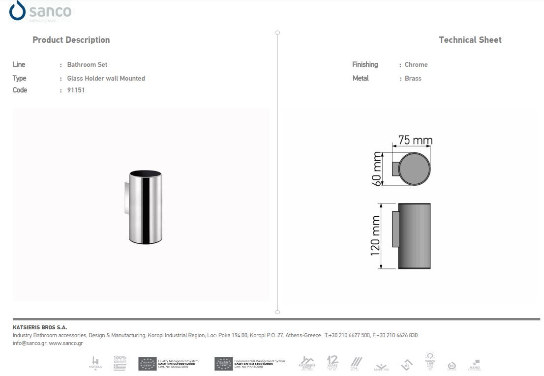Ποτηροθήκη Επιτοίχια 6x7,5x12 cm Brass Black Mat Sanco Metalic Bathroom Set 91151-M116