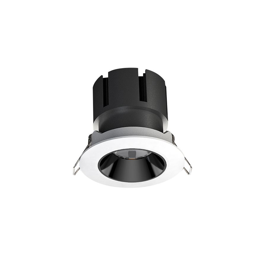 Φωτιστικό σποτ χωνευτό σε γκρι χρώμα με λευκό δαχτυλίδι και μαύρο ανακλαστήρα.
