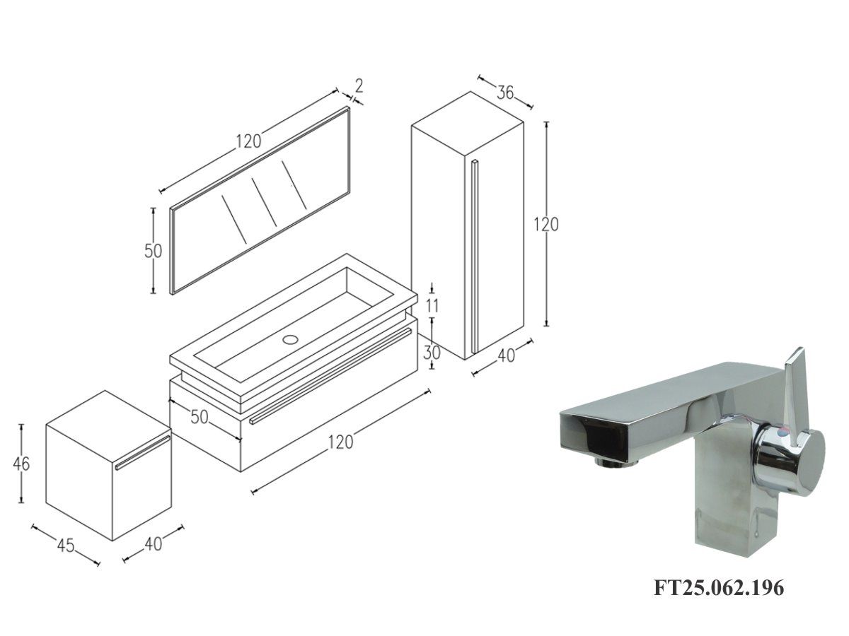 Περιγραφή:Σετ Κρεμαστό Επίπλου Μπάνιου, Νιπτήρα & Καθρέπτη