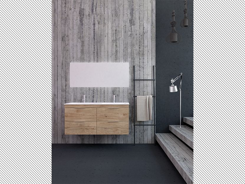 Σετ Έπιπλο Μπάνιου 120 εκ.Βάση-Νιπτήρας Solid Διπλός,MDF Μελαμίνη Χρώμα Light Hickory,Καθρέπτης Savvopoulos Likno 006