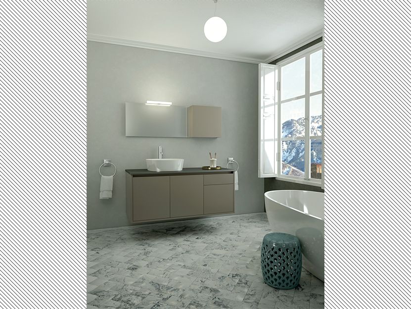 Σετ Έπιπλο Μπάνιου 120*50 εκ.MDF Λάκα Τεσσίτα Μόκα Πάγκος Τεχνογρανίτης 20mm, Νιπτήρας, Καθρέπτης,Άνω Ντουλάπι, Φωτιστικό Urban I