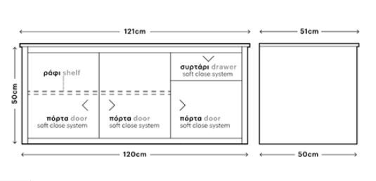 Διάσταση Επίπλου: Μ 120* Β 50 *Υ 50 εκ.