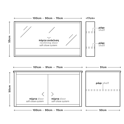 - Το έπιπλο διατίθεται σε Μήκος 71, 91 & 101 εκ. σε: