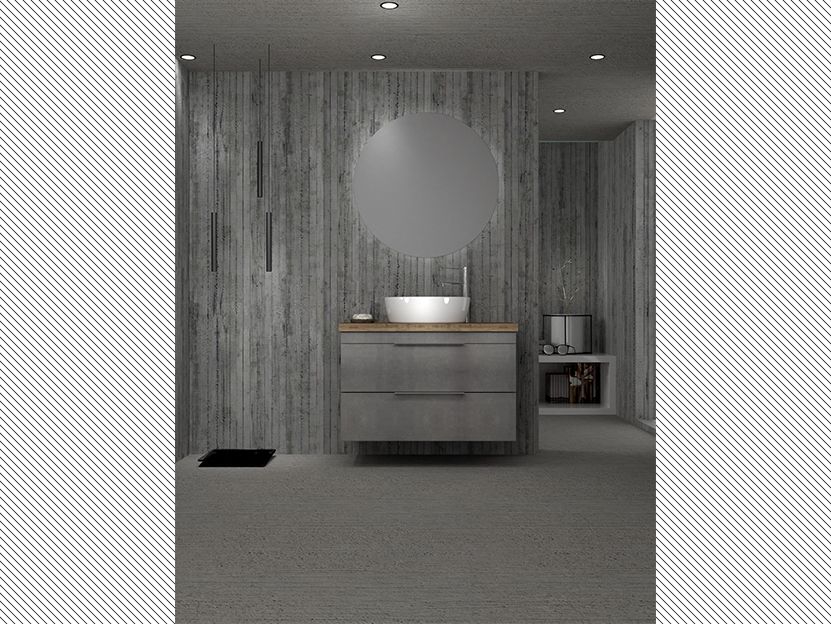 Σετ Έπιπλο Μπάνιου 90cm Cemento Ματ Βάση -Νιπτήρας,Πάγκος Μασίφ Ξύλο Πεύκο 40mm,Καθρέπτης Led Savvopoulos Likno IV