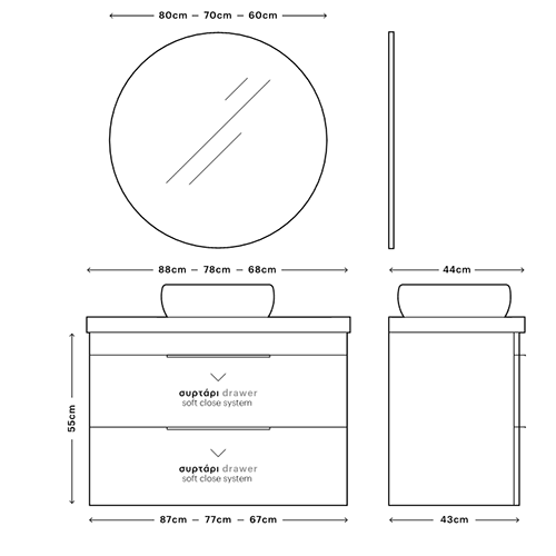 Το έπιπλο διατίθεται σε 70,80 & 90 εκ.