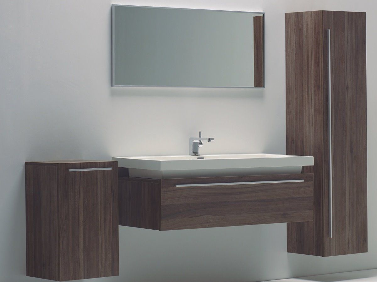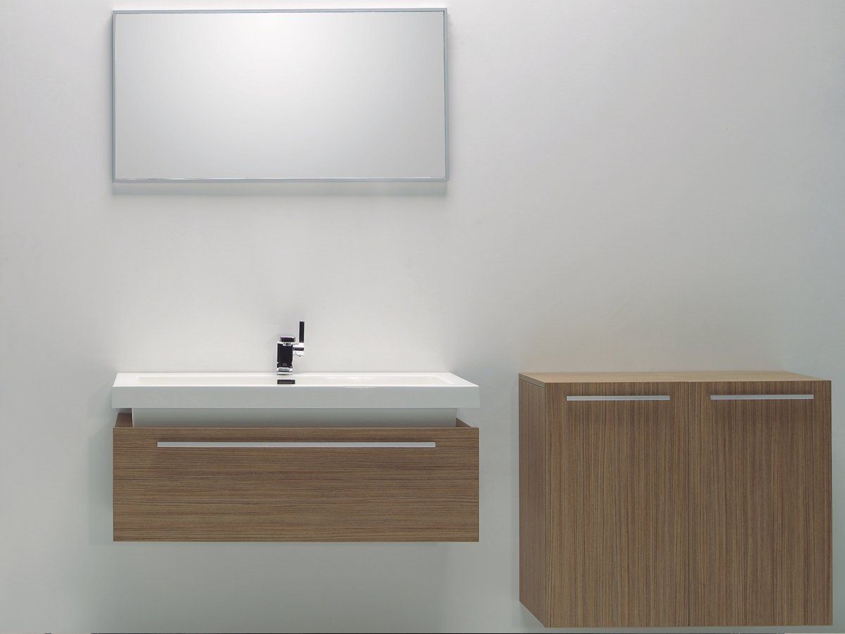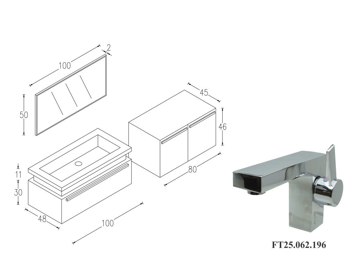 Σετ Κρεμαστό Έπιπλο Μπάνιου 100 cm - Νιπτήρα -Καθρέπτη, G-Walnut