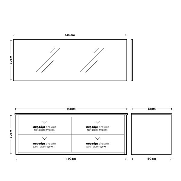 Το έπιπλο έχει τέσσερα συρτάρια με απαλό κλείσιμο Soft Closing.