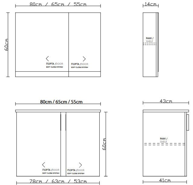 Διαθέσιμες διαστάσεις 55,65,80cm με νιπτήρα ενιαίο πορσελάνης, σε 7 αποχρώσεις μελαμίνης και