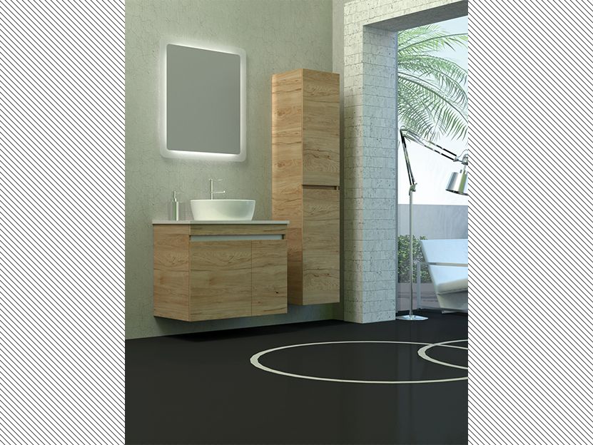 Σετ Έπιπλο Μπάνιου Βάση Π70*Υ60*Β43 εκ.MDF Μελαμίνη Light Hickory,Νιπτήρας-Καθρέπτη Savvopoulos Luxury City XL 002