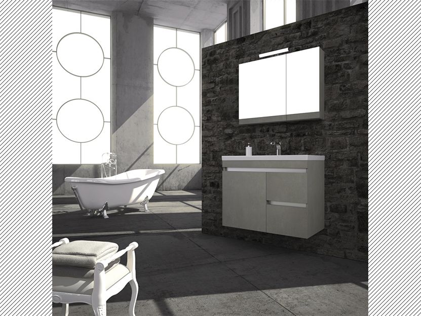Σετ μπάνιου Blend 003, της εταιρείας Savvopoulos, αποτελούμενο από Βάση, Νιπτήρα, Καθρέπτη & Φωτιστικό.