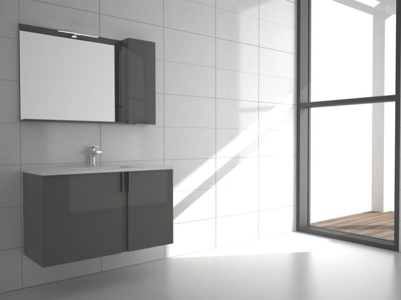Σετ Έπιπλο Μπάνιου Βάση 80*43 εκ. Λάκα Μολυβί Γυαλιστερή -Νιπτήρας Linea 80-Καθρέπτης Hermes Savvopoulos Luxury Amazon 002.