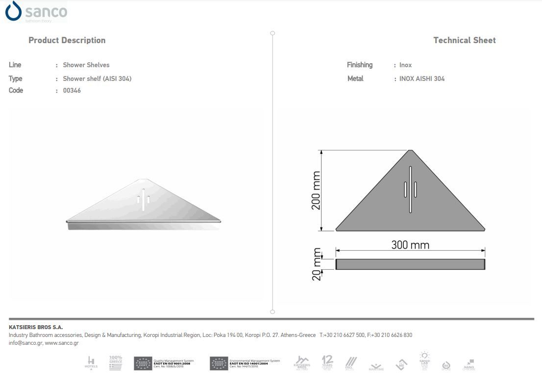 Σπογγοθήκη Επίτοιχη Γωνιακή Χρωμέ Sanco Shower Shelves 0346-A90