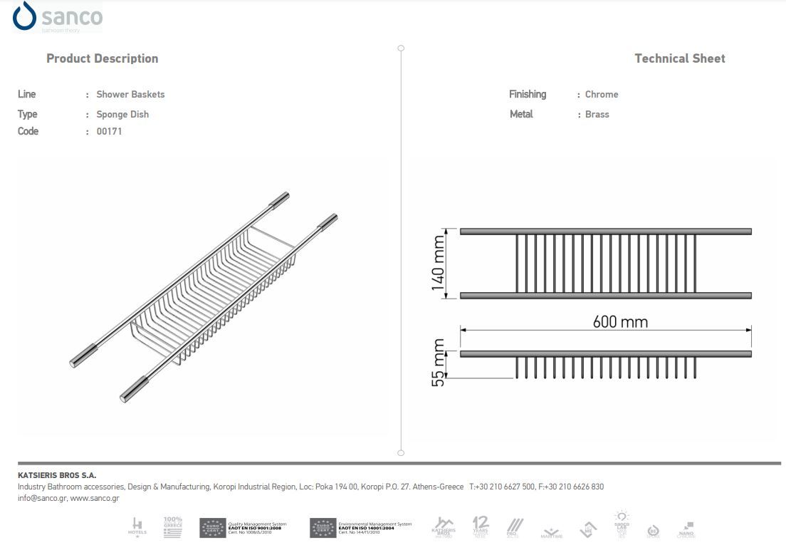 Σπογγοθήκη Μπανιέρας W60xD14xH5,5 Black Mat Sanco Shower Baskets 0171-M116