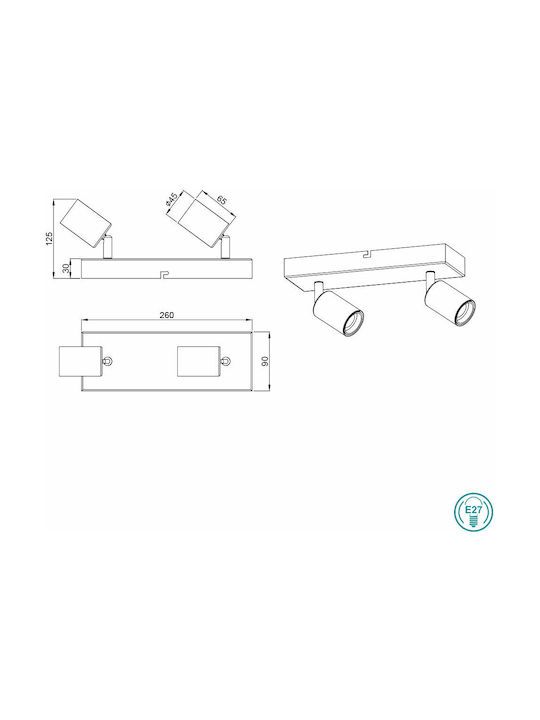 Σποτ Ράγα Δίφωτο L26x12x9cm 2xΕ27 Νίκελ Ματ Trio Vannes R80182007