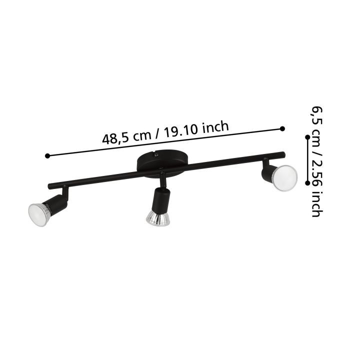 Σποτ Ράγα Τρίφωτη Μαύρη L48,5 3xGU10 Eglo Buzz-Led 32431