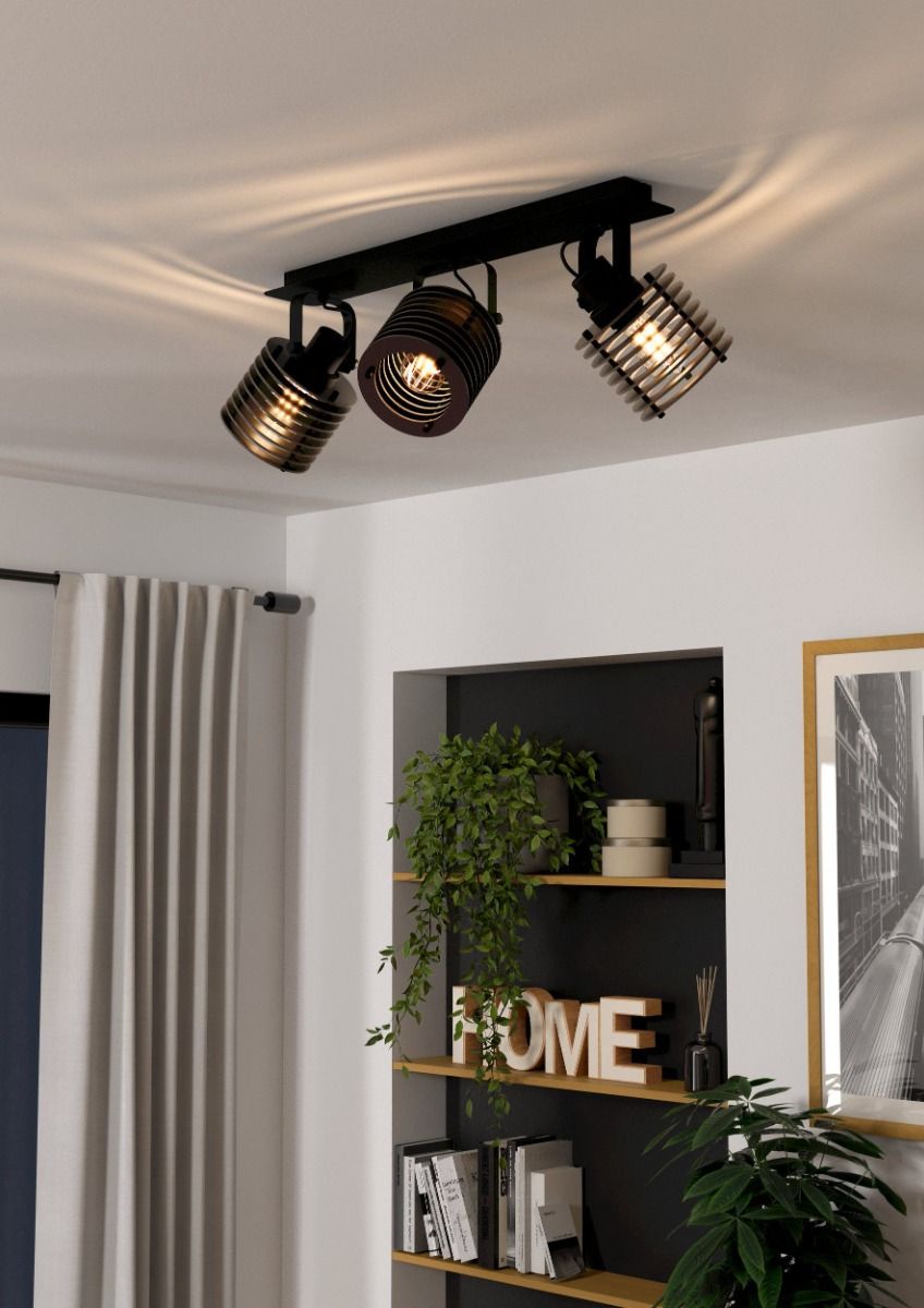 Τριπλό σποτ με ντουί E27 της Eglo σε μαύρο χρώμα.