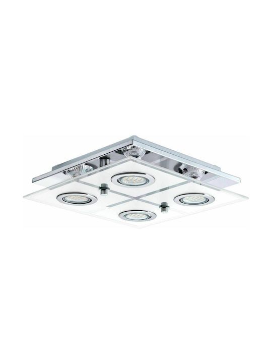 Σποτ Ροζέτα Τετράφωτη D29x29xH7m 4xGU10 3000K Ατσάλι Χρώμιο-Διάφανο Σατινέ Γυαλί Eglo Cabo 30931