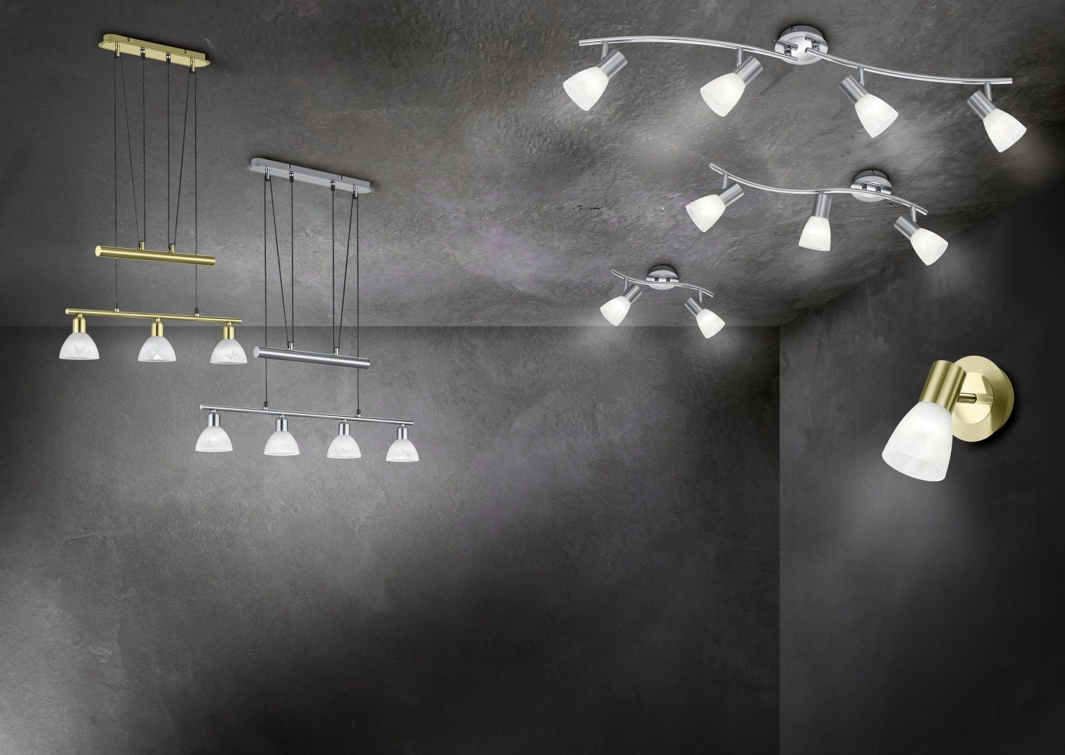 The modern three-light LEVISTO spotlight illuminates your living space with warm white light and creates a cosy ambience.