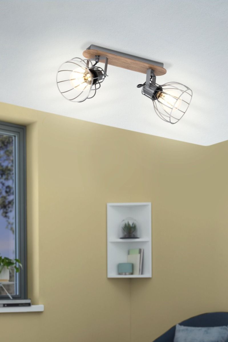 Σποτ L480xH260mm Δίφωτο 2xE27 Μαύρο-Καφέ Ξύλο Eglo Sambatello 98135