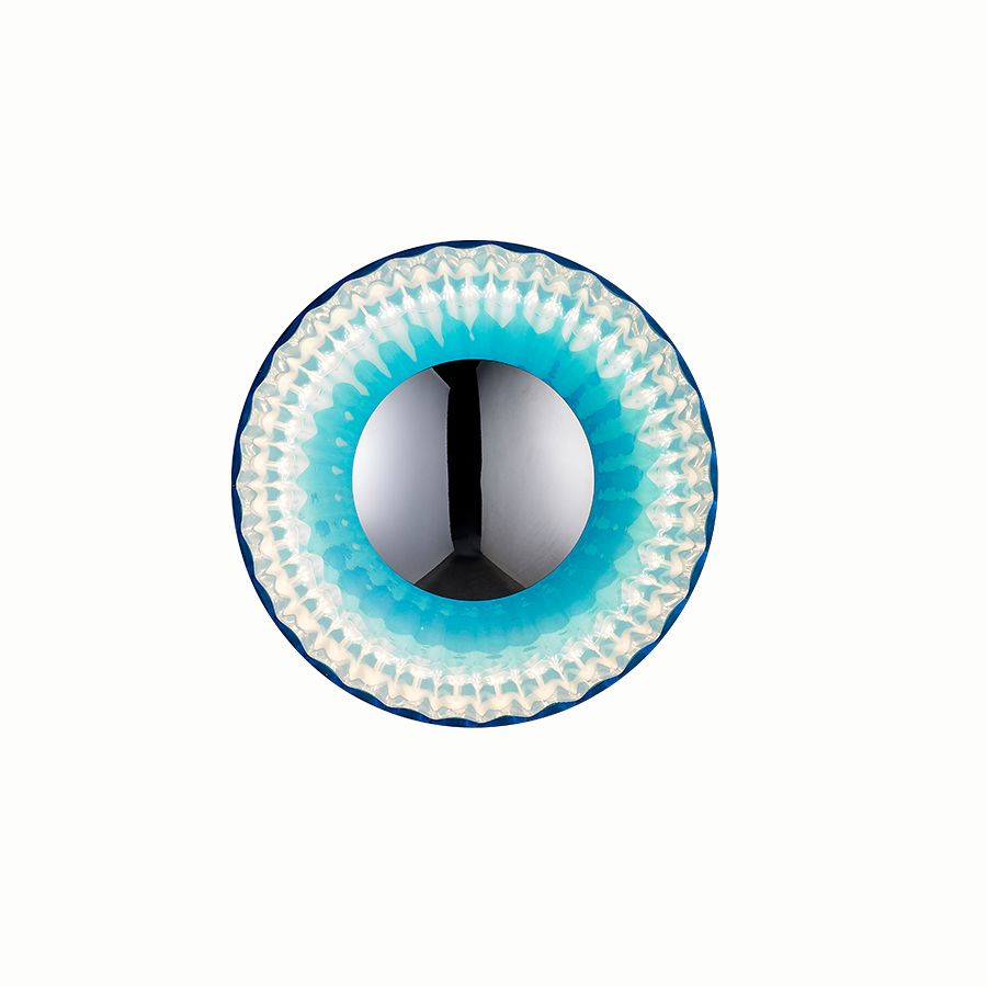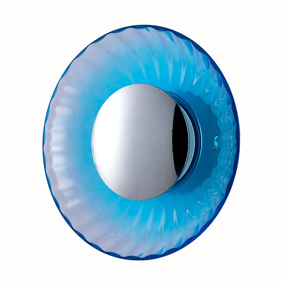 Φωτιστικό τοίχου κατασκευασμένο από χειροποίητο γυαλί χρώματος μπλε με μεταλλικά στοιχεία στο χρώμα του χρωμίου. Διαθέτει ενσωματωμένο LED με θερμό χρώμα (3000Κ).| Χρώμα | Μπλέ-Blue-Γαλάζιο-Σιέλ-Τυρκουάζ |