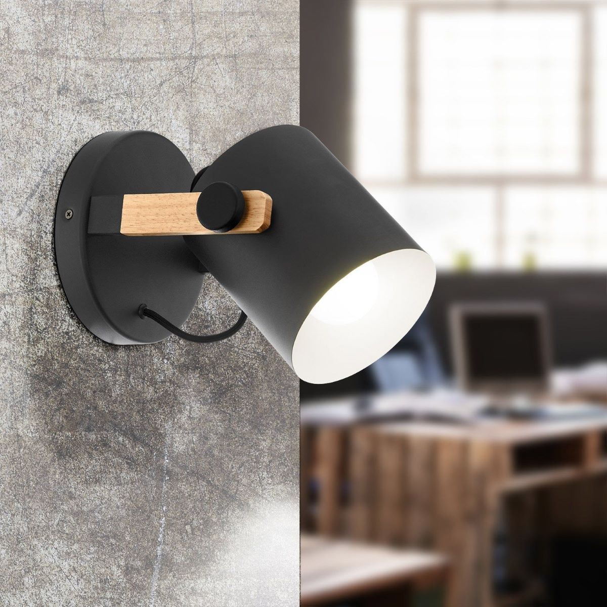 Φωτιστικό Απλίκα Μαύρο/Ξύλο, Ρυθμιζόμενη Κεφαλή Eglo Hornwood 43046.