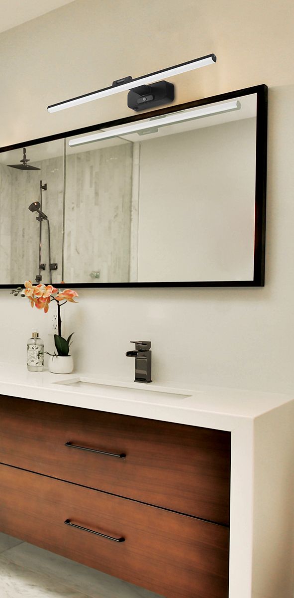 Φωτιστικό Απλίκα Μπάνιου 58,5cm με Αισθητήρα Κίνησης Led 20watt 729lm 3000K IP20 Μαύρο Ματ Beam Angle 120° Viokef Norris 4279200