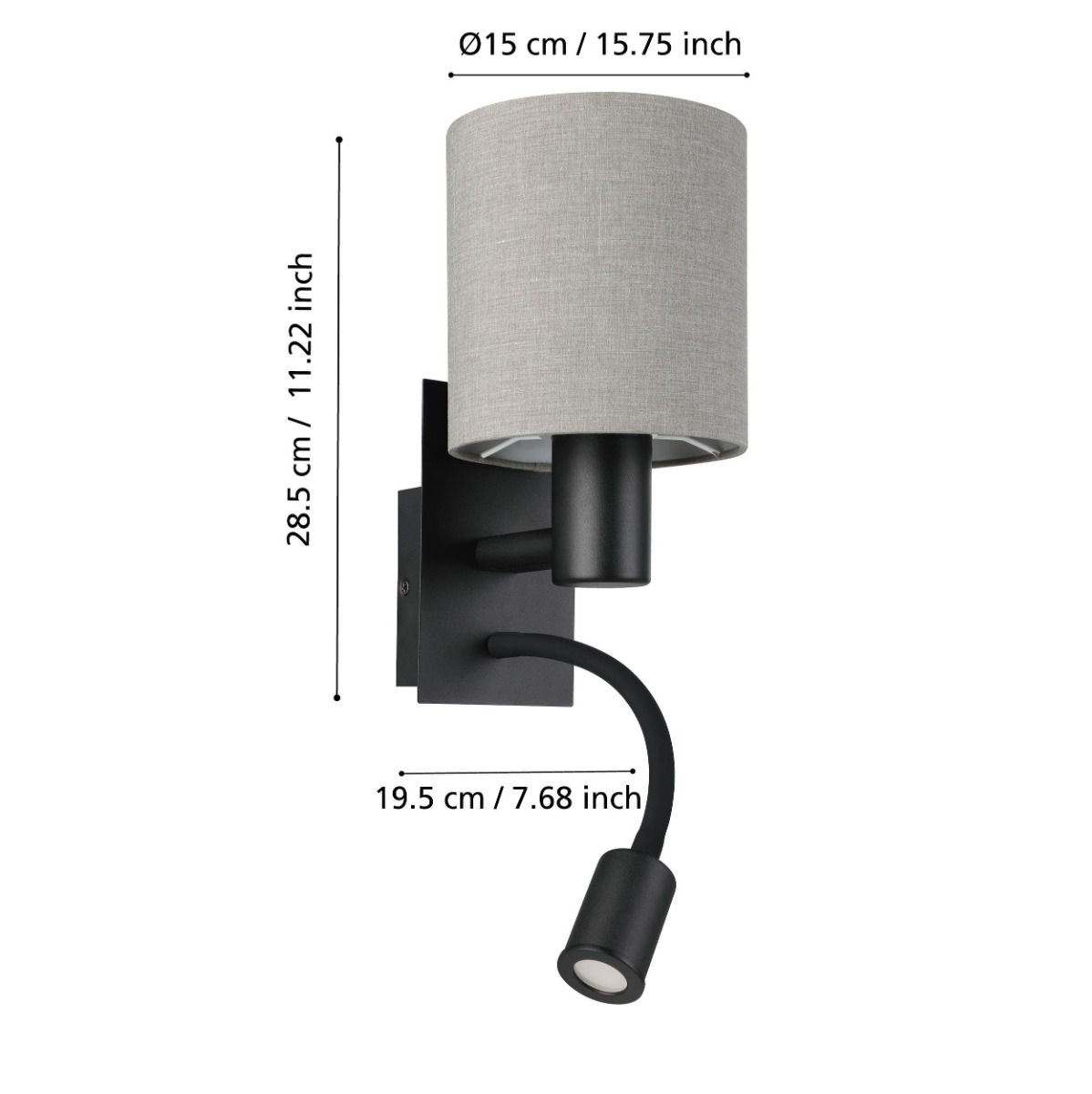 Φωτιστικό Απλίκα Τοίχου 1xE27 με Σποτ Διαβάσματος Μέταλλο Μαύρο Ύφασμα Γκρι Eglo Pasteri 900701