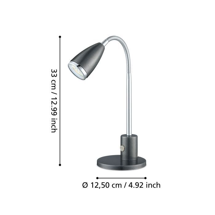 Φωτιστικό Γραφείου Μαύρο-Χρωμέ Ø12,5xH32 cm 1xGU10 2,8w Warm White 250lm 220-240V,50/60Hz Eglo Fox 92873