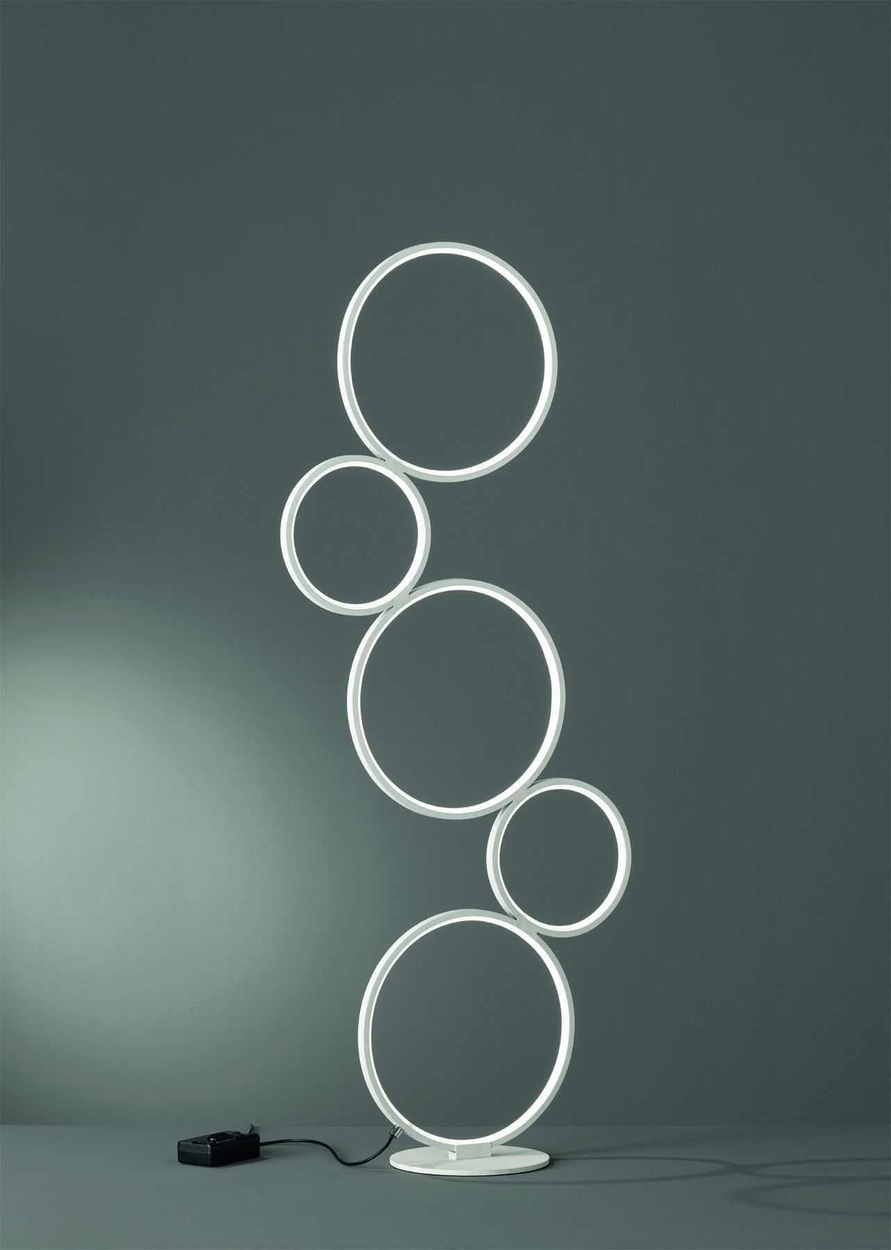 With its five stacked rings of different diameters, the RONDO floor lamp is a real eye-catcher.