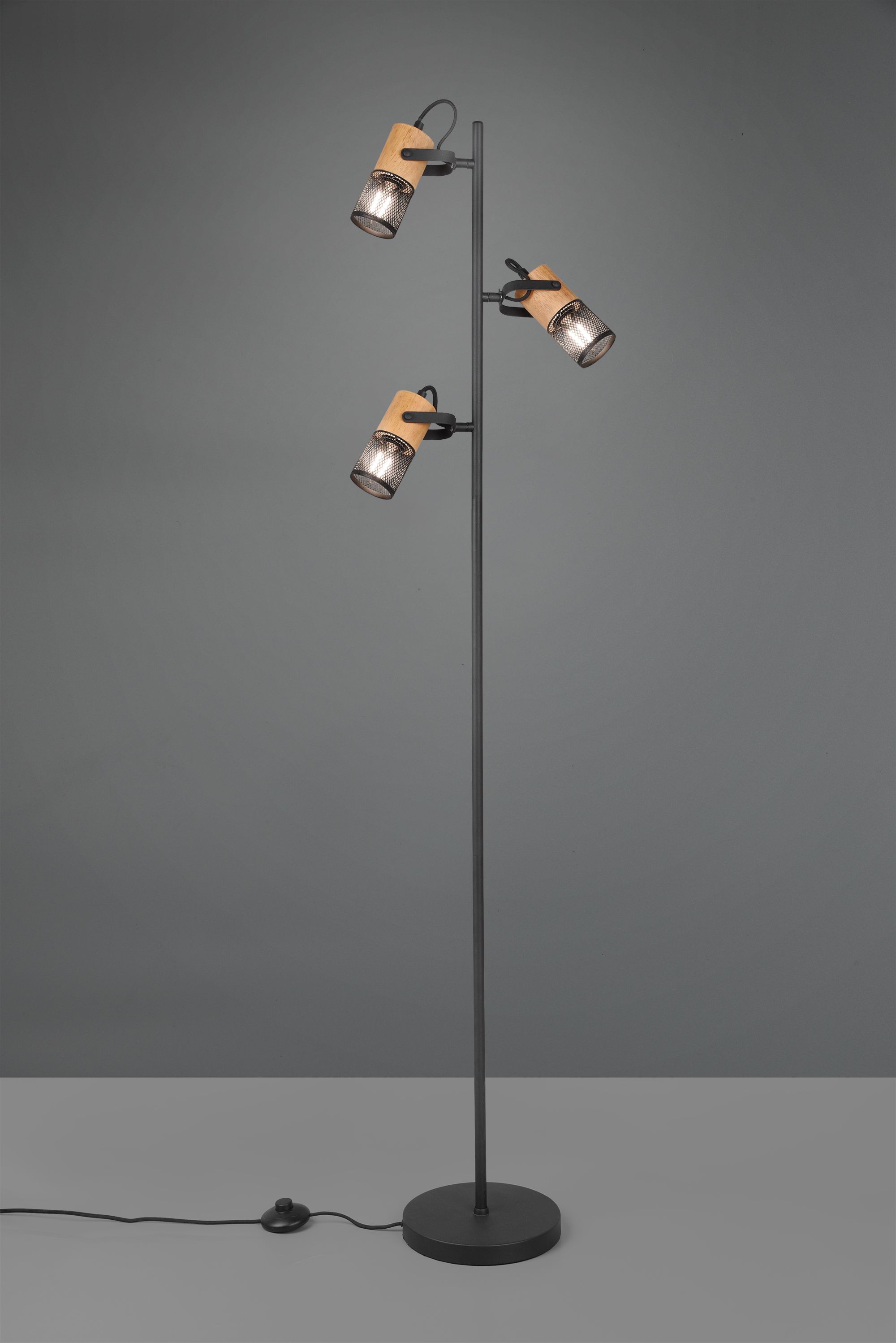 Φωτιστικό Δαπέδου Μέταλλο-Ξύλο 23xH150cm 3xE14 Black Mat Trio Lighting Tosh 404300332